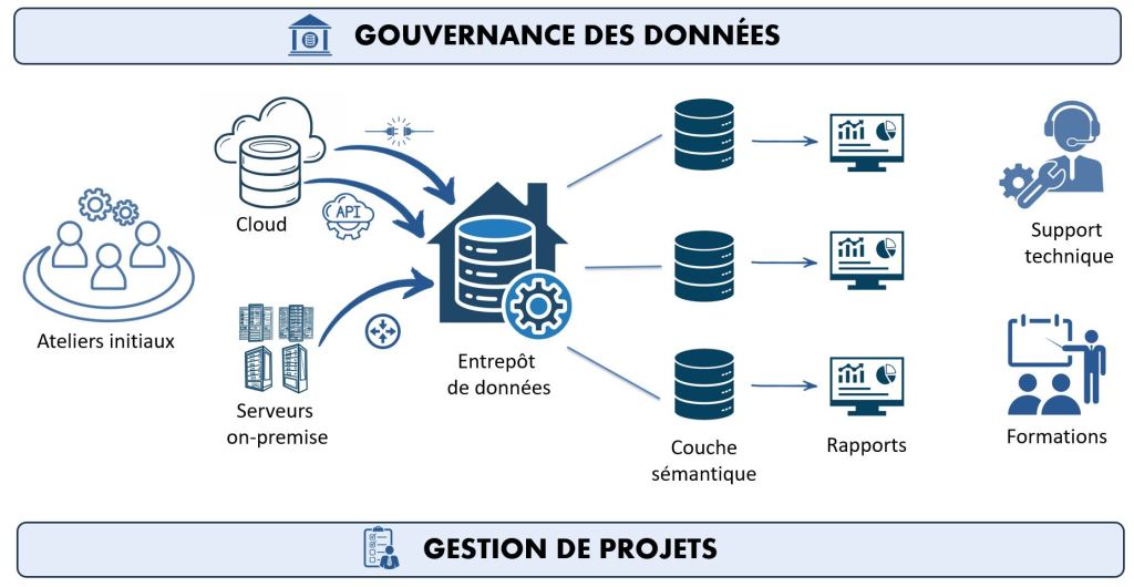 Nous coordonnons, gérons et accompagnons vos projets Data de A à Z, de la conception à la mise en œuvre, en garantissant qualité et délais.